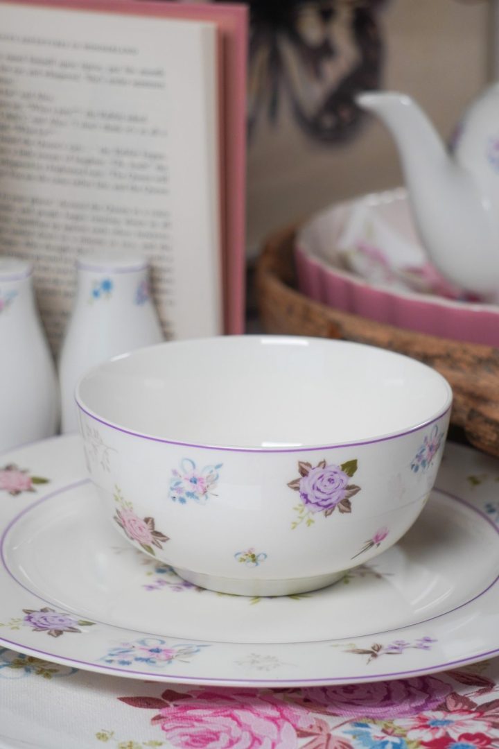 Porcelanasta posodica Flora z motivom barvitih rožic.